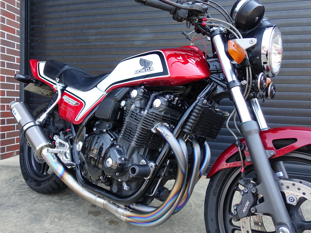 さて、本日のお客様は、CB750F仕様のCB1100で、ご注文の手曲げチタンマフラー装着のため豊橋からお越しくださいました。