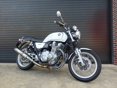CB1100EXの車両重量は、スタンダードより約15Kg増加しています。チタンマフラーを装着することで軽量化と...