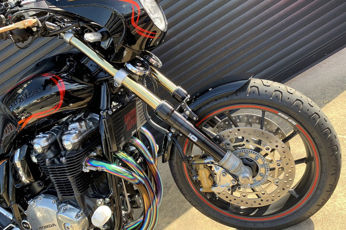 オーリンズ新正立フロントフォークを装着する際に必要なパーツとなります。