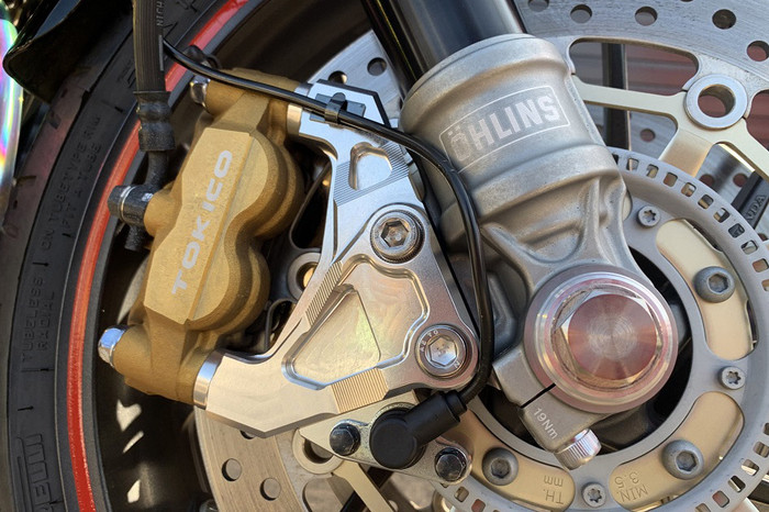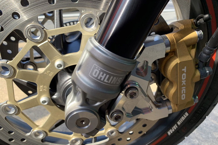 オーリンズ新正立フロントフォークを装着する際に必要なパーツとなります。
