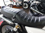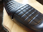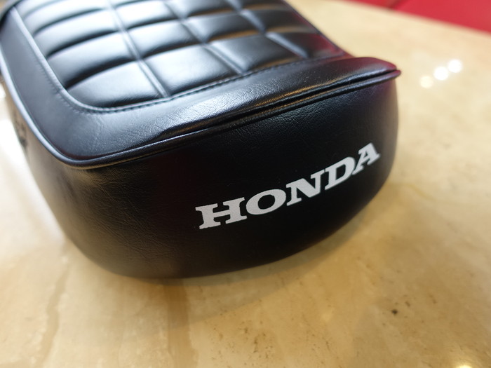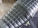 ベルトの取り付け金具とタックロールがアクセントになって旧車の雰囲気が漂います。