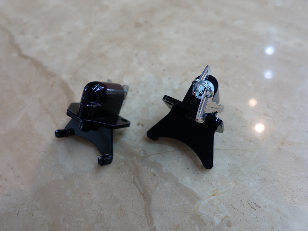 CB1100のノーマルハンドルをセパレートハンドルに交換の際、ハンドル切れ角を制限しセパレートハンドル装着時のハンドル(スイッチ)とタンクの接触を防ぎます。