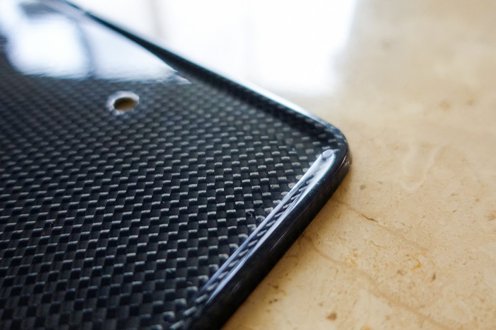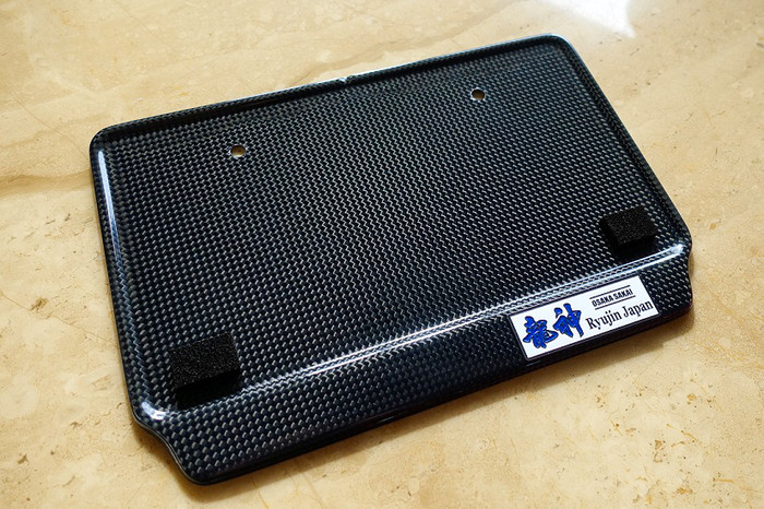ナンバープレートのバタつきを抑え、外周のリブ形状の厚みにより強度と高級感を兼ね備えたカーボンナンバーベース!